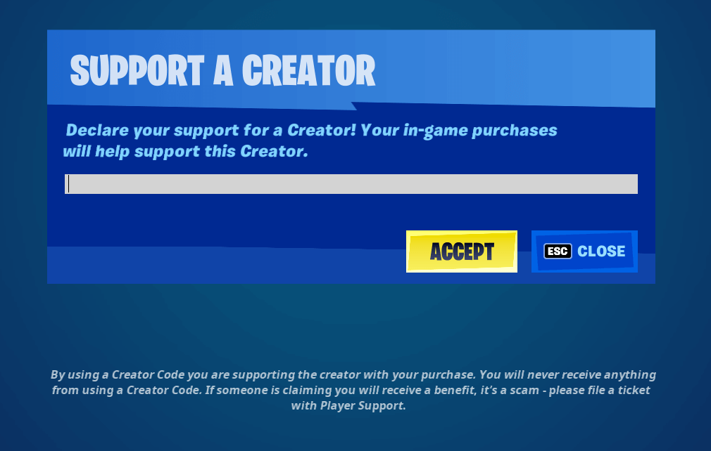 🔸 Support-A-Creator (SAC): Es SOLO para streamers y creadores de contenido en redes sociales. Tu código se usa en la TIENDA. Este es el que te explicamos aquí.